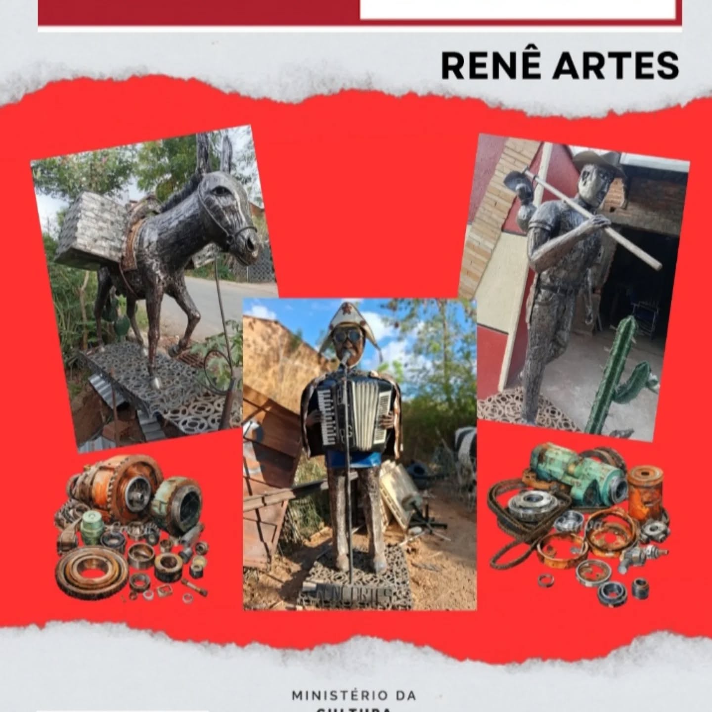 Com criatividade, sensibilidade e habilidade manual, Rene Campos transforma peças de ferro descartadas em verdadeiras obras de arte, valorizando a identidade sertaneja e mostrando que a arte pode nascer dos lugares mais improváveis. Seu trabalho une sustentabilidade, memória cultural e expressão artística, encantando o público pela originalidade e pela força simbólica de cada escultura.