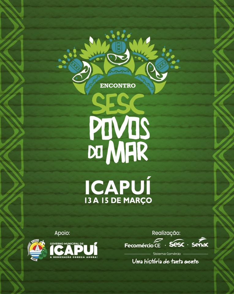 De 13 a 15 de março, o Sistema Fecomércio, por meio do Serviço Social do Comércio (Sesc), realiza a 4ª edição do Encontro Sesc Povos do Mar – Circuito Icapuí, reunindo pescadores (as), jangadeiros, marisqueiras, barqueiros, Povos Indígenas, Quilombolas, Ciganos, artesãos (ãs), brincantes e ambientalistas que desenvolvem uma programação socioeducativa e sociocultural totalmente gratuita, que traduz saberes e fazeres, valorizando identidades e modos de vida das comunidades litorâneas do Ceará.